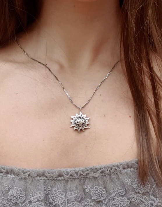 Collana collezione Sole a marchio Labriò in argento 925 brunito.Lunghezza collana 60cm,accorciabile a 50cm.Consegna entro 3gg
