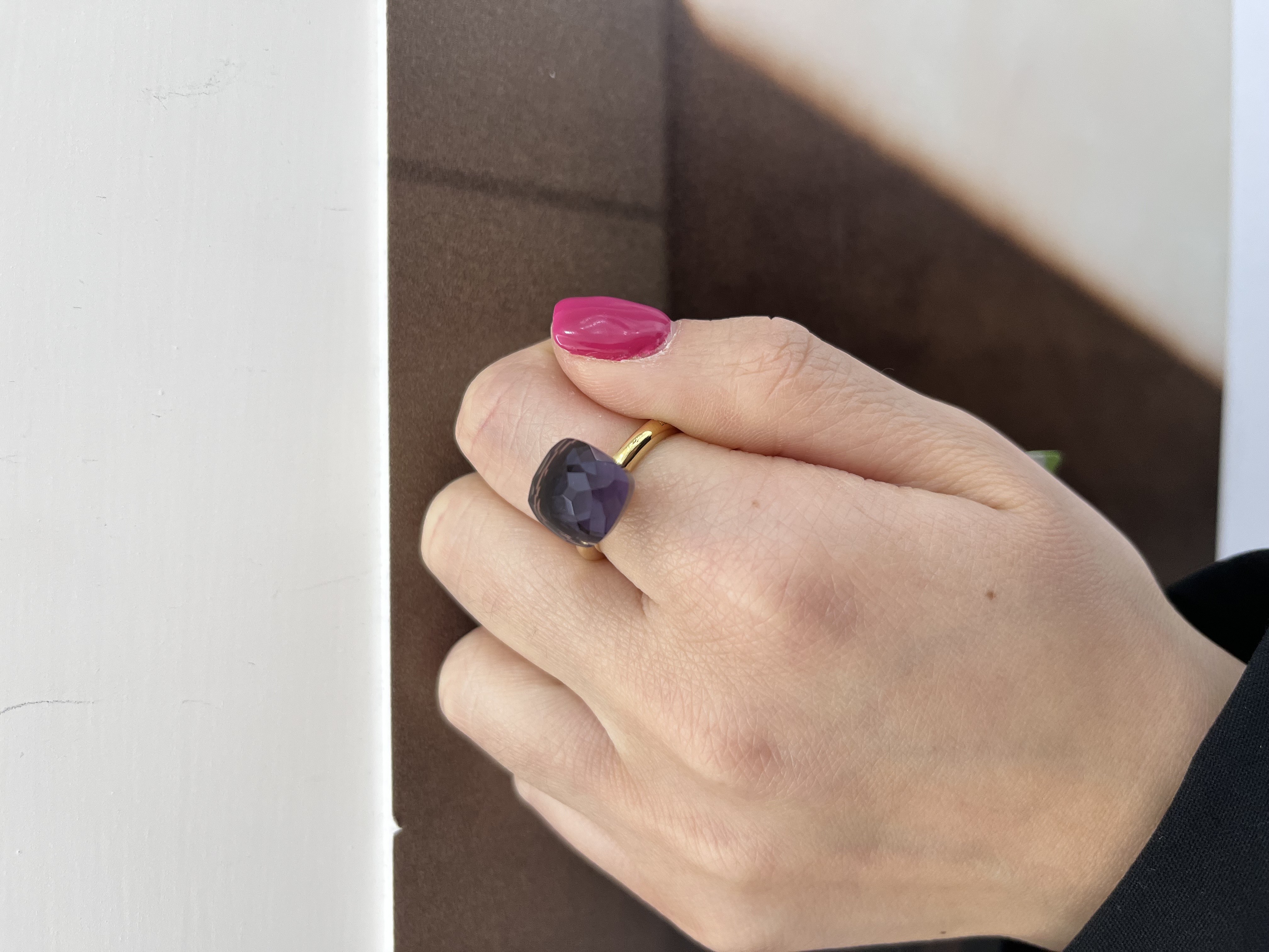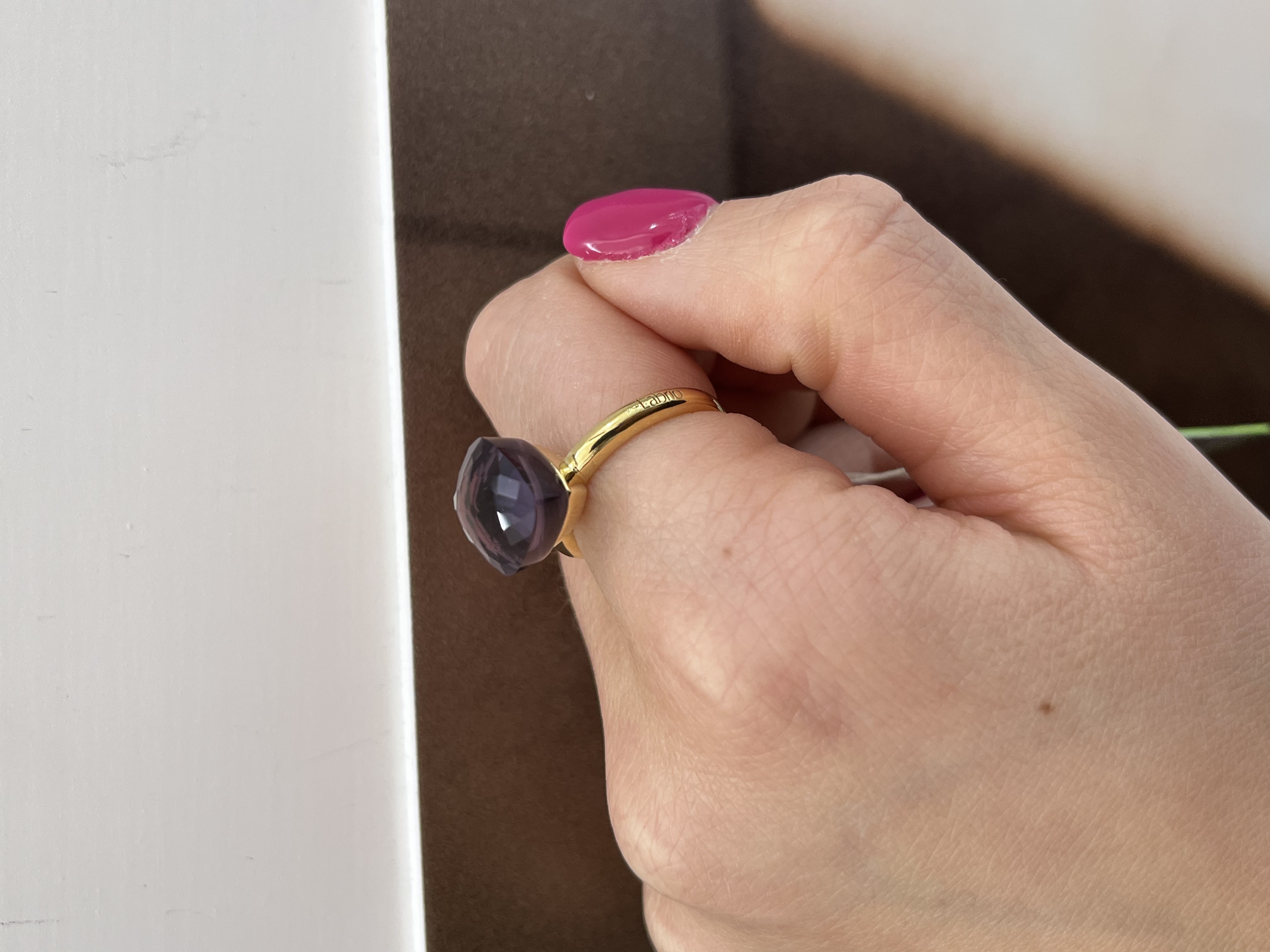 Anello in argento dorato 925 con quarzo di colore viola I lati della pietra sono di 1 cm circa. Misura disponibile 14. Consegna entro 3gg lavorativi. Spedizione gratuita.