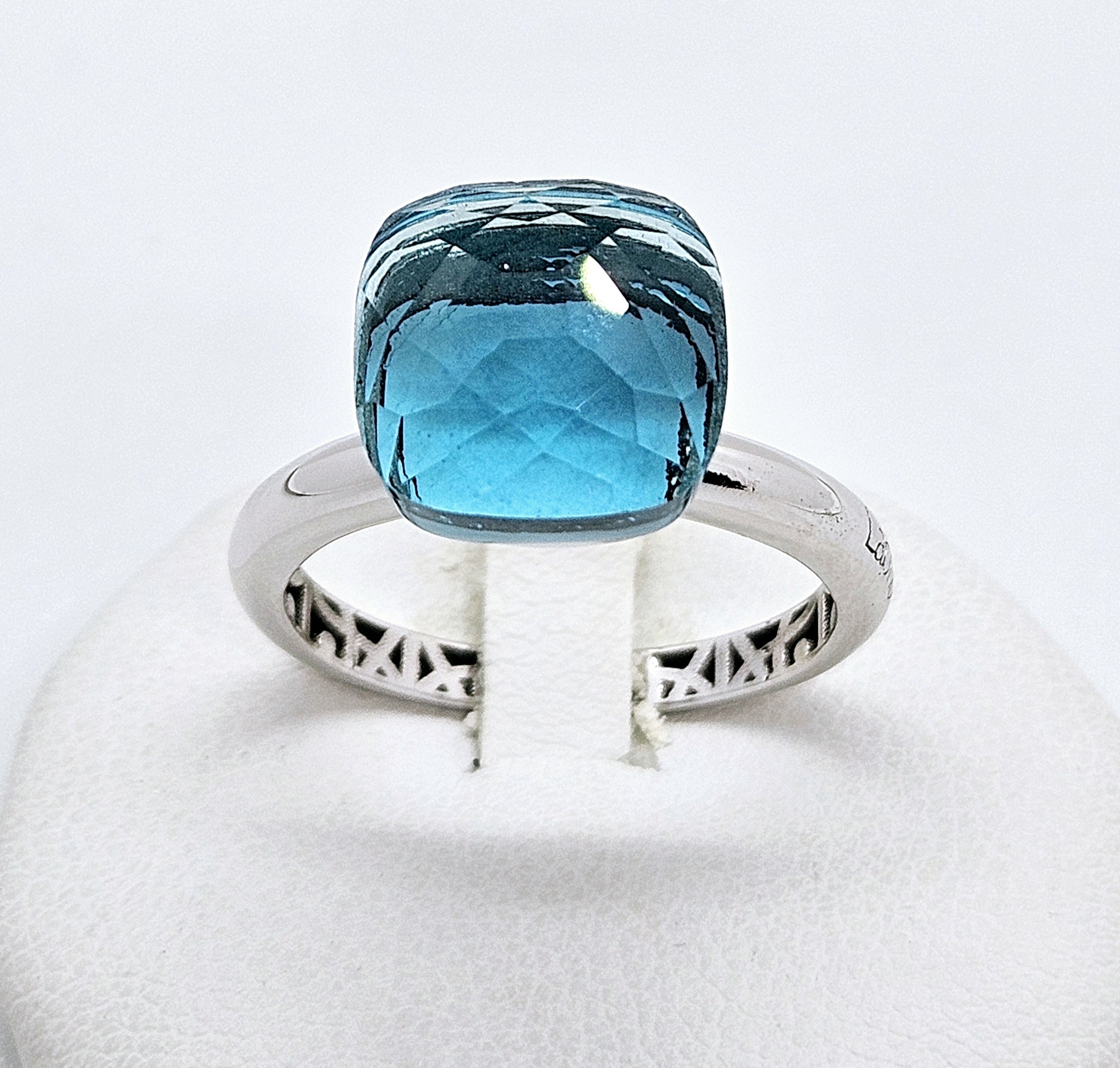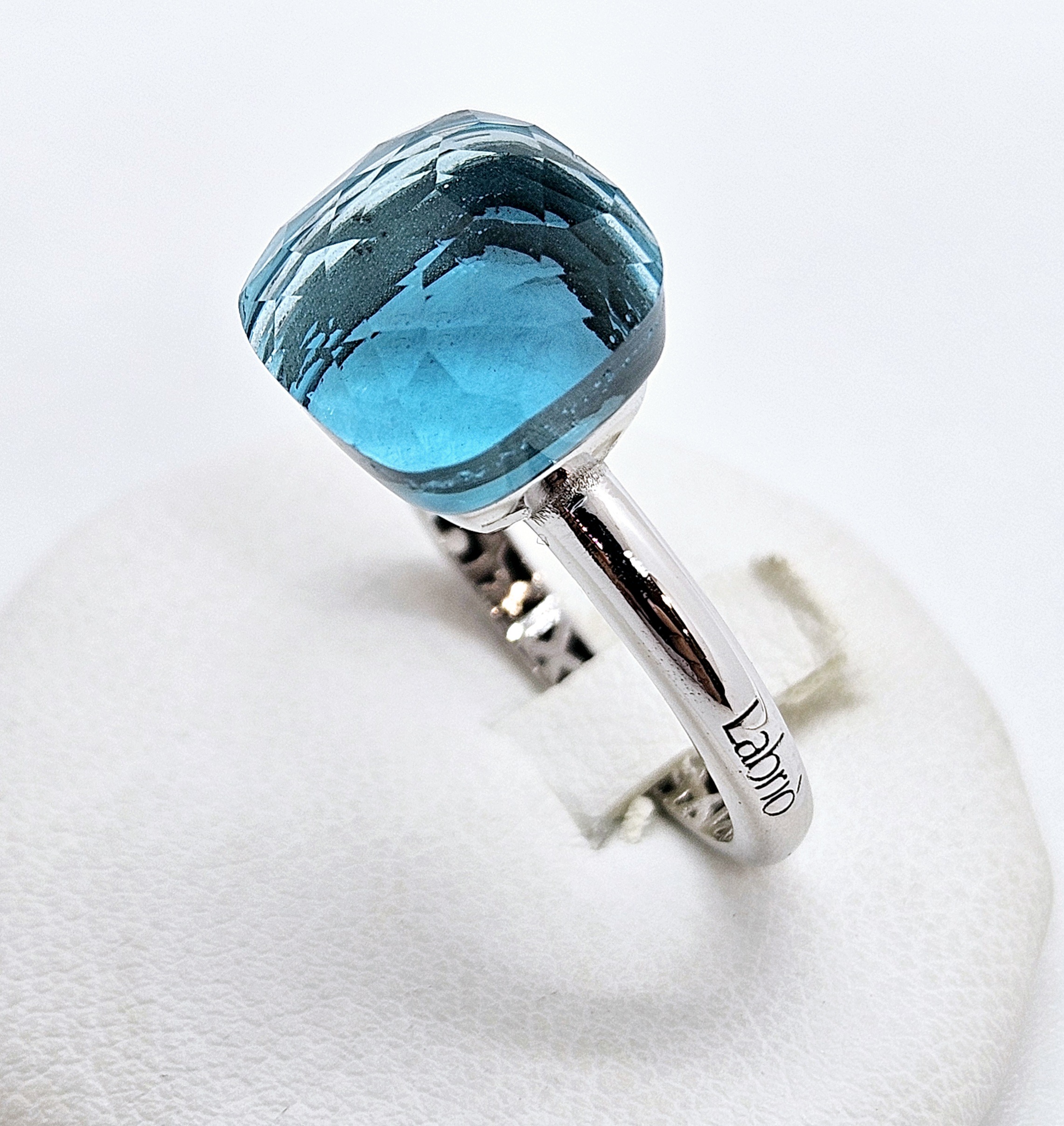 18kt con pietra quarzo sintetico colore blu Ceylon