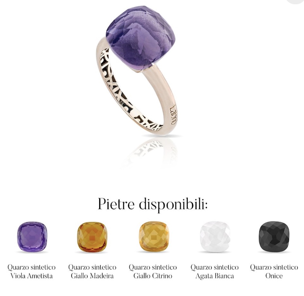 Collezione iconica in oro 18kt a marchio Labriò, in oro giallo,rosa oppure bianco, con pietre quarzo sintetico di vari colori.Misure ordinabili dal n.11 al n.26 Specificare nelle note d’ordine misura e colore dell’oro oltre che colore della pietra. Consegna 20gg Spedizione gratuita.