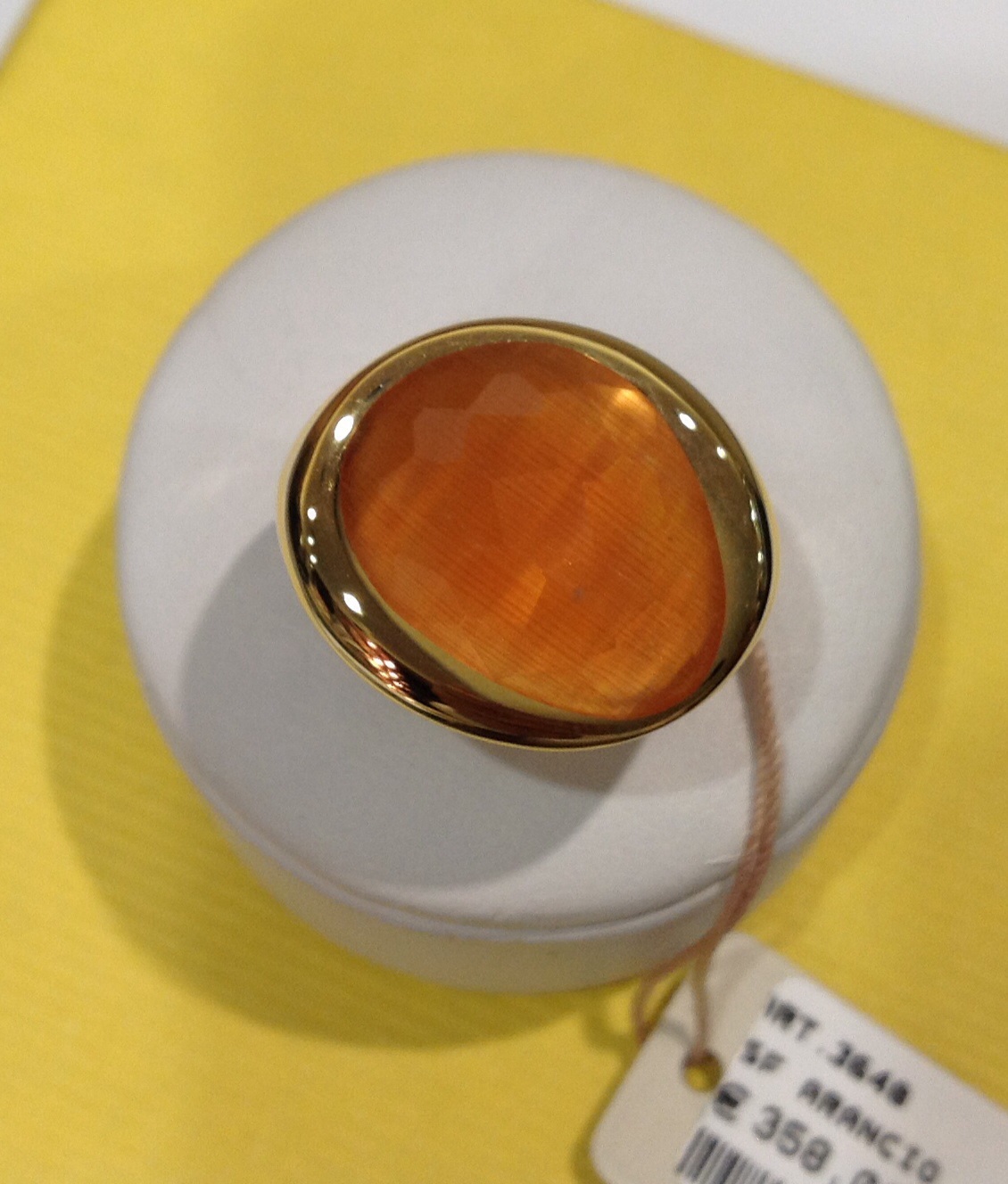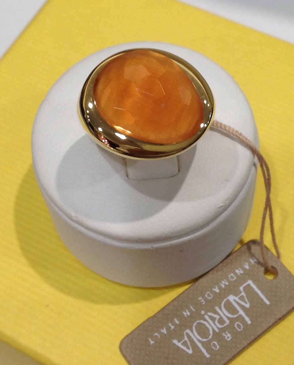 Collezione Labriola Oro. Anello dalle linee classiche, in oro giallo 18kt con pietra quarzo idrotermale colore arancio.Misura immediatamente disponibile n.16.Lavorazione in elettroformatura. Ultimo pezzo.Consegna entro 3gg. Spedizione gratuita.