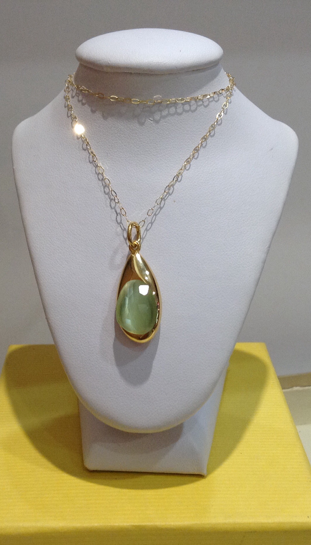 Collezione Labriola Oro. Pendente in oro giallo 18kt con pietra quarzo idrotermale verde più catenina in oro 18kt lunghezza 45cm. Consegna 2gg. Spedizione gratuita.