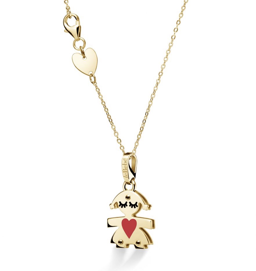 Edizione limitata della linea Le bebè con grafismi smaltati.Femminuccia in oro giallo 9kt H. 1,4 cm L.1,2 cm Lunghezza collana regolabile 40 – 42 cm. Consegna entro 3gg. Spedizione gratuita.PEZZO UNICO