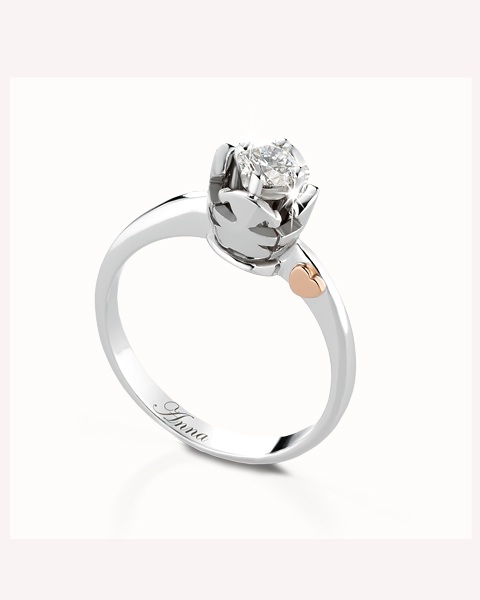 Collezione. Gli inseparabili.I Solitari Le Bebè. Modello cestino in oro bianco 18kt versione bimba. Cuoricino in oro rosa. Diamante Kt.0,10 colore G purezza VS. Misura disponibile n.15 Consegna entro 3gg Spedizione gratuita.Ultimo pezzo.Non più in produzione, prezzo bloccato