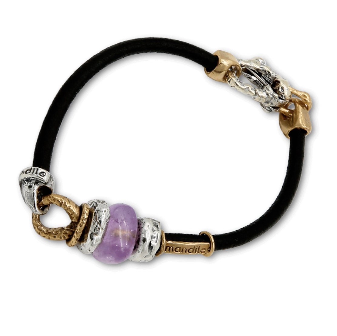 Bracciale in argento 925,bronzo e pietra naturale, cuoio nero e chiusura artigianale a moschettone.Determinare misura bracciale tramite tabella.Consegna entro 10 giorni lavorativi.Spedizione gratuita.