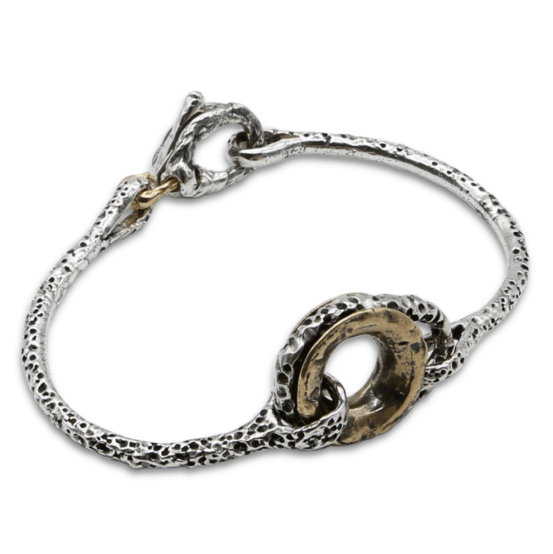 Bracciale semirigido unisex in argento 925 e bronzo,chiusura artigianale.Indicare nelle note d’ordine la misura desiderata.Consegna entro 10gg lavorativi.Spedizione gratuita.