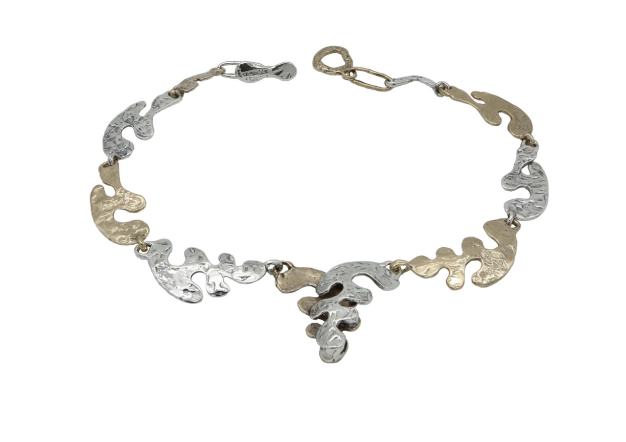 Collana in argento 925 e bronzo. Chiusura artigianale a T-bar.