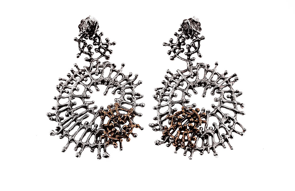 Splendidi orecchini in argento 925  e bronzo modello ragnatela della lunghezza di circa 7cm.Produzione artigianale.Consegna entro 10gg.lavorativi.Spedizione gratuita.