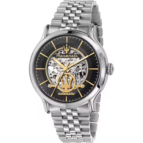 OROLOGIO MASERATI EPOCA – R8823118015 -nOrologio da uomo in acciaio con dimensione cassa mm.42.00, Spessore cassa: 13.25, Finitura cassa: Lucido, satinato, Colore cassa: Silver, Vetro: Vetro minerale, trattamento zaffiro, Fibbia deployante con pulsanti. Movimento: Quarzo, Water resistant: 10 atm, Garanzia: Ufficiale 2 anni Maserati, Confezione: Originale Maserati