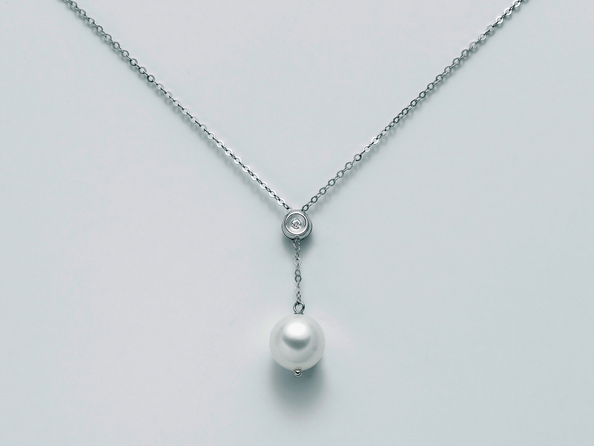 Collier Miluna in oro bianco 18kt con Diamante del peso di kt 0,01 con perla del diametro di mm.8-8,5.Consegna entro 3gg.Spedizione gratuita.