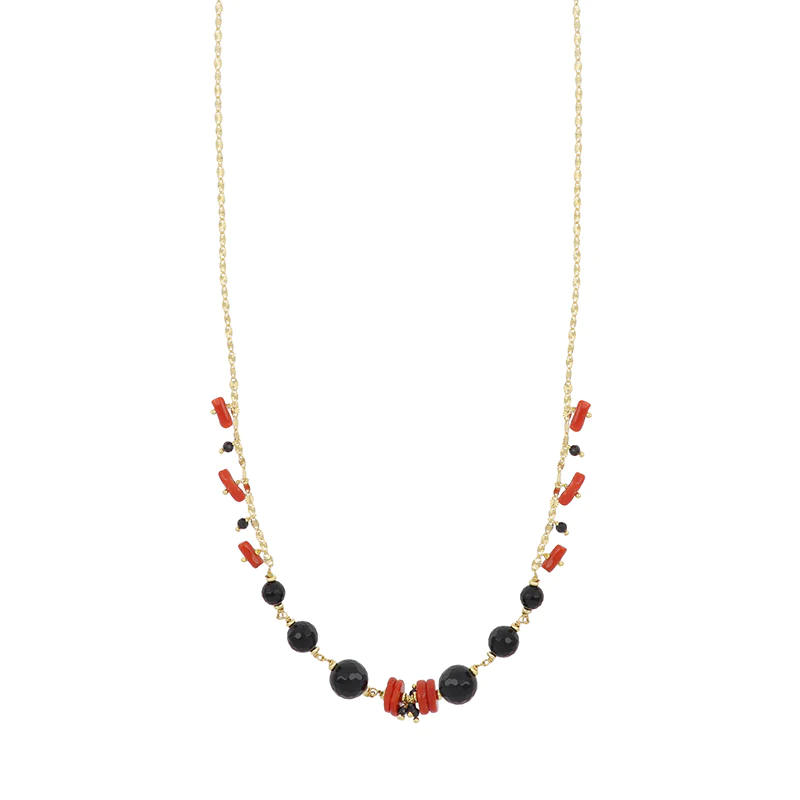La collana Gabrielle è realizzata in argento 925 °/°° con corallo, onice e spinello. Misura 40 cm regolabile fino a 45. Consegna entro 3gg lavorativi. Spedizione gratuita.