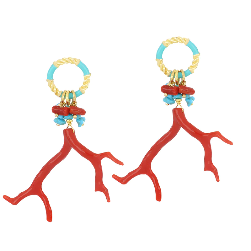 Orecchini realizzati in argento 925 con corallo, turchese e smalto. Lunghezza circa 7.5. Consegna entro 3gg lavorativi. Spedizione gratuita.