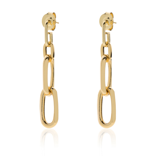 Orecchini di catena forzatina battuta in bronzo lucido con bagno in oro 24 kt. Chiusura a perno e farfallina. Consegna entro 3gg lavorativi. Spedizione gratuita.