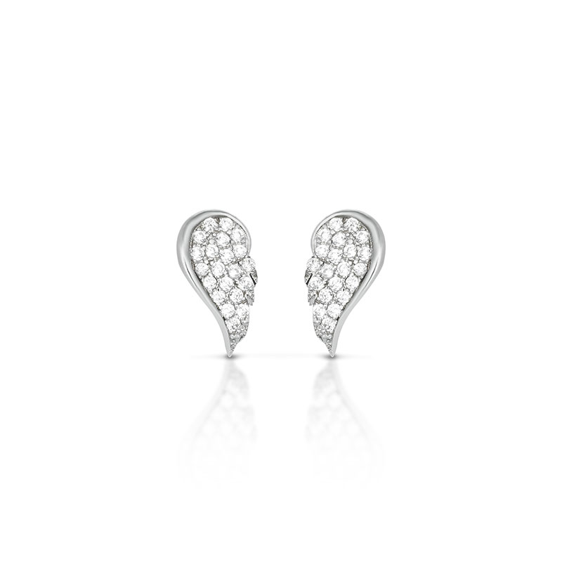 Collezione Angeli.Orecchini ala in argento e zirconi bianchi. ala: base 0,5 cm – altezza 1 cm. Consegna entro 3gg.