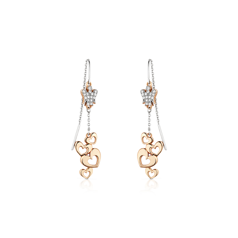 Collezione Angeli. Orecchini con angeli in argento rosato, zirconi bianchi e cuori – lunghezza orecchino 5 cm – angelo: base 0,7 cm – altezza 0,8 cm.Consegna entro 3gg.