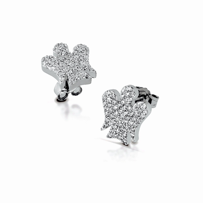 Orecchini in argento con pavè di zirconi bianchi. Dimensione Angeli base cm.1,4 altezza cm.1,7. Consegna entro 3gg.