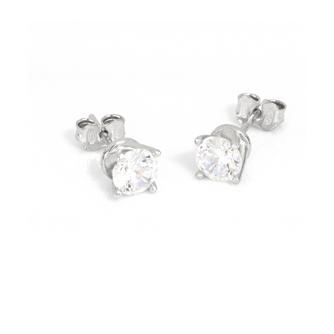 Orecchini in argento rodiato 925 con pietra zirconia cubica bianca di diametro 6 mm e chiusura con perno e farfallina. Consegna entro 3gg lavorativi.