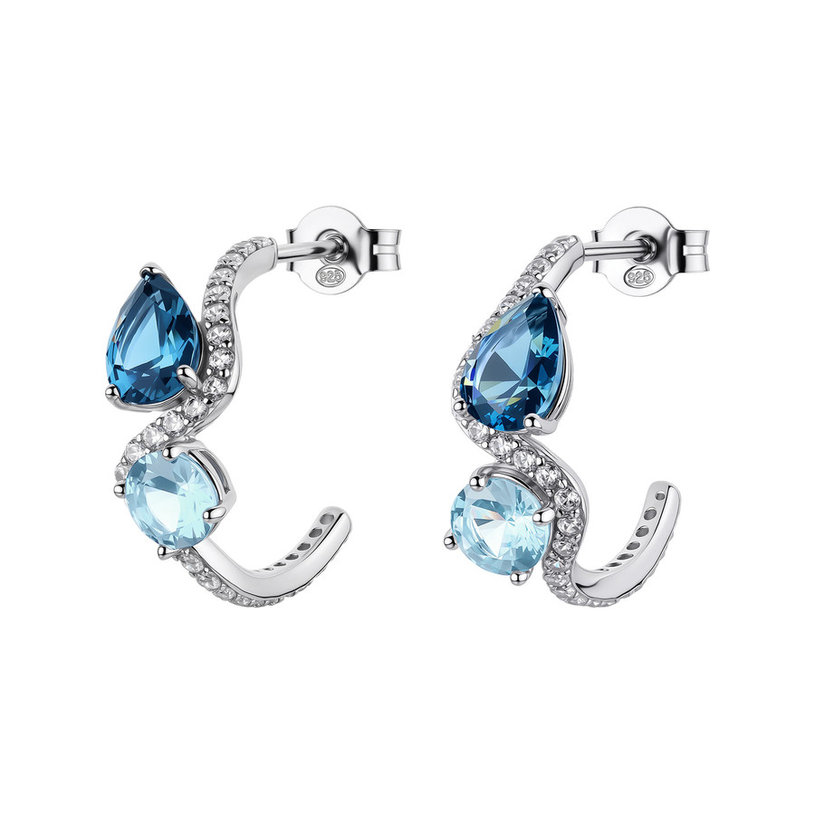Orecchini a cerchietto FANCY in argento 925/1000 rodiato, con cubic zirconia sapphire e light sapphire forma round e pear