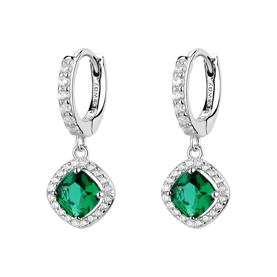 Orecchini a cerchio in argento rodiato 925‰ e pendenti con cubic zirconia e cubic zirconia colore emerald.