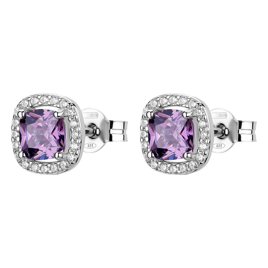 Orecchini a lobo in argento rodiato 925‰ con cubic zirconia chiari e cubic zirconia colore amethyst.