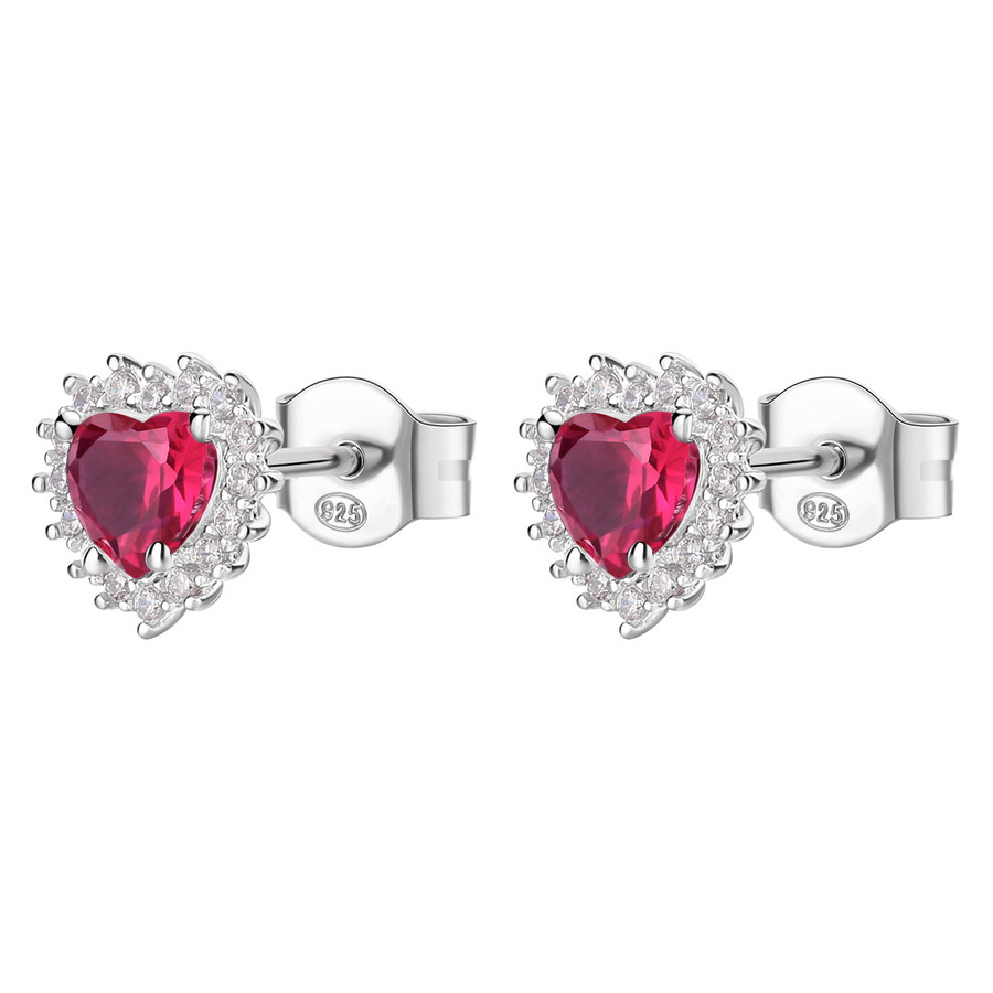 Orecchini Kate a lobo a forma di cuore in argento rodiato 925‰ con cubic zirconia chiari e cubic zirconia colore ruby.