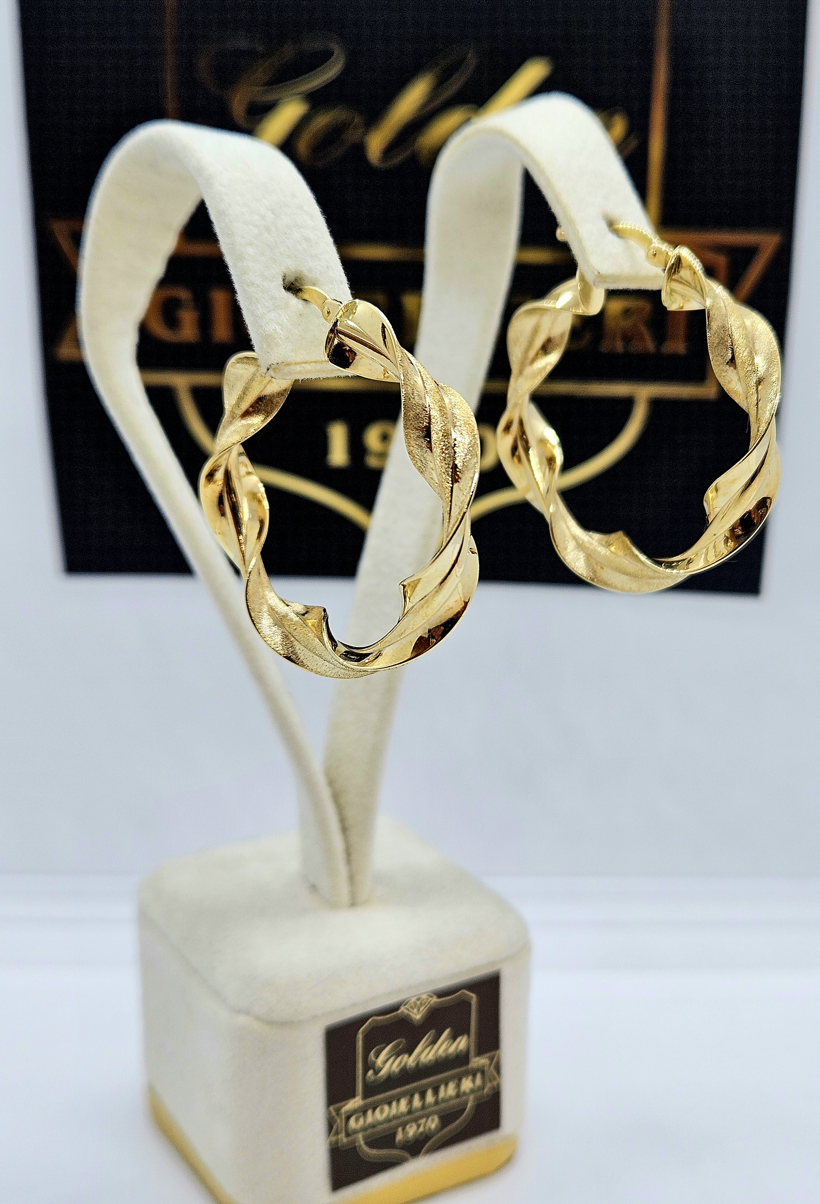 Orecchini modello cerchi in oro giallo 18kt,modello intrecciato satinato e lucido.Consegna ntri 3 gg.Spedizione assicurata e gratuita