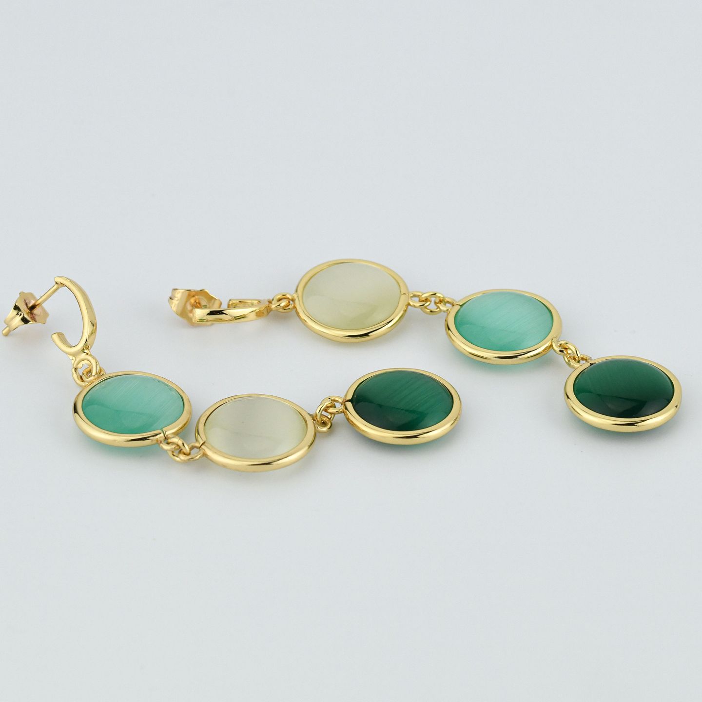 Collana placcata oro giallo con cristalli effetto cabochon di colore rosa chiaro e grigio, tra moduli martellati. Consegna entro 3gg lavorativi.