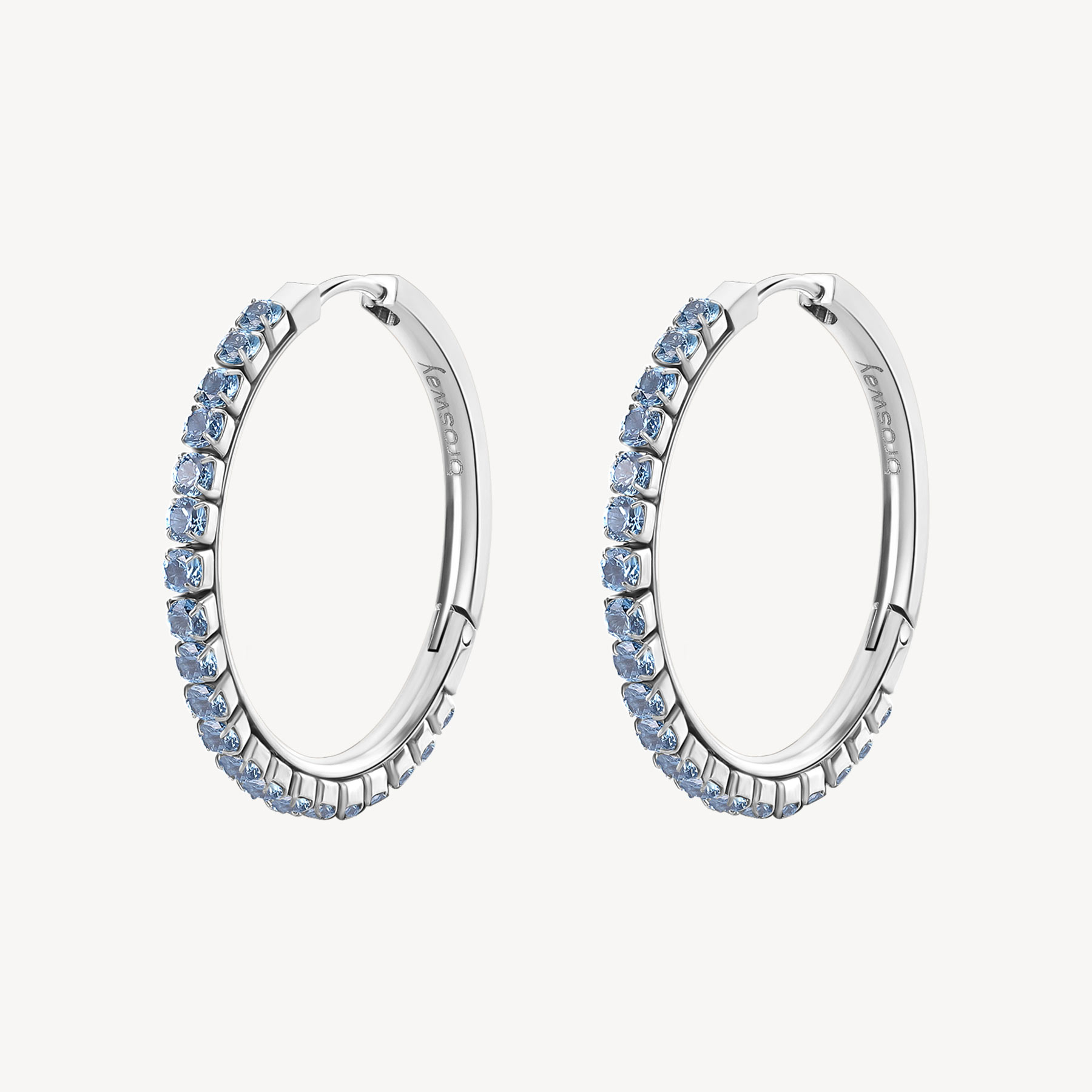 Orecchini cerchietto medi in acciaio 304 e cubic zirconia colore spinel. Diametro 32,2 mm . Consegna entro 3gg lavorativi.