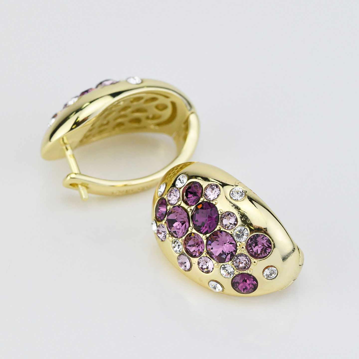 Orecchini placcati oro giallo a forma di ovale decorati da cristalli crystale light ametist. Consegna entro 3gg lavorativi.