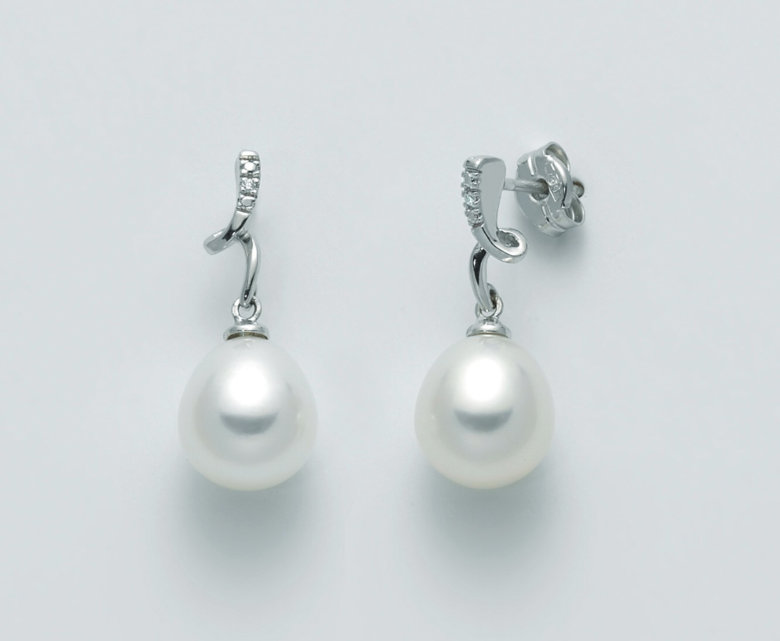 Oreccchini in oro bianco 9kt,modellompendente con n.2diamantimper punti tot.0,6 G SI è n.2 perle drop col.bianco 8,5-9. Consegna entro 3gg. Spedizione gratuita.