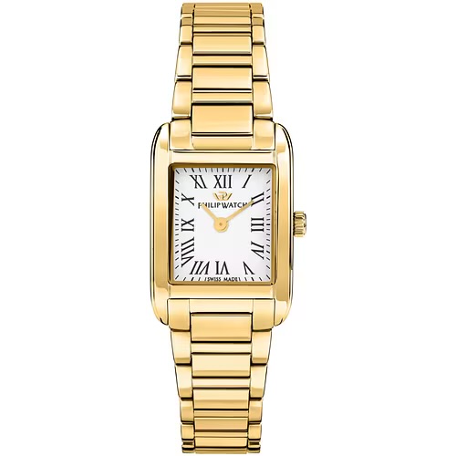 Orologio da Donna, in acciaio placcato oro. Dimensione 25.00×34.00mm, Spessore cassa: 7.50mm Vetro zaffiro. Chiusura: Fibbia farfalla con pulsanti, Movimento: Quarzo, Swiss made Water resistant: 3 atm, Garanzia: Ufficiale 2 anni Philip Watch, Confezione: Originale Philip Watch