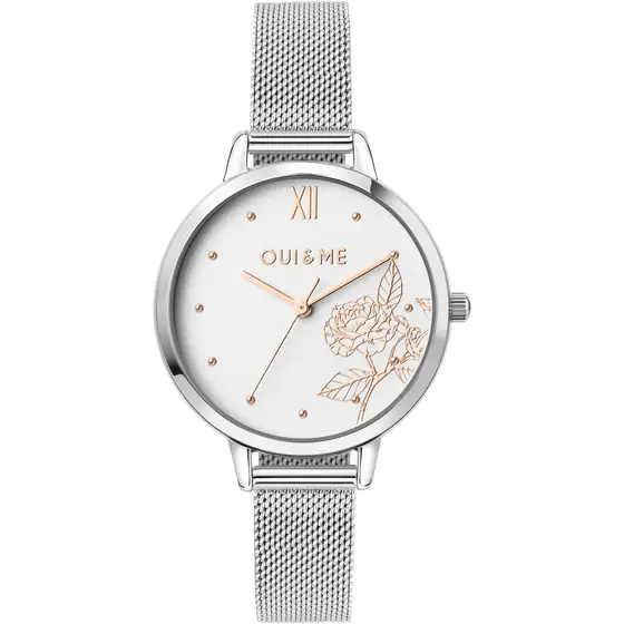 Orologio solo tempo da donna di Oui&me della collezione fleurette. Orologio realizzato in acciaio riciclato. Orologio con cassa di 32mm. Resistente all’acqua 5 ATM. Consegna entro 3gg lavorativi. Spedizione gratuita.