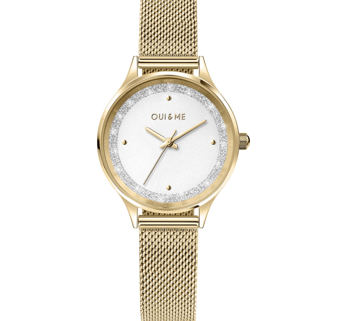 Orologio solo tempo da donna di Oui&Me. Orologio in acciaio, pvd oro con cassa in acciaio con finitura lucida del diametro di 28mm con vetro minerale. Bracciale in metallo di colore oro rosa con chiusura a clip e gancio. La resistenza all’acqua è di 5 atm. Consegna entro 3gg lavorativi. Spedizione gratuita.