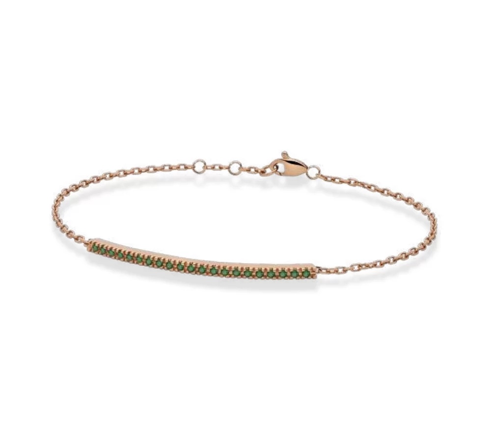 Collezione backspin della linea Paddle gioielli.Bracciale semirigido in oro rosa 18kt con Smeraldi per kt0,20. Lunghezza minima 17cm/massima 20cm. Consegna entro 3gg. Spedizione gratuita.