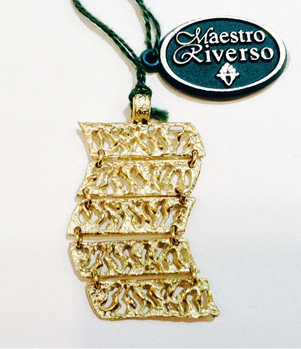 Collezione gioielli Maestro Riverso. Pendente in oro giallo 18kt modello Saccomanno. Dimensioni: lunghezza 4,3cm; larghezza 2,1cm. Consegna entro 3gg lavorativi. Spedizione assicurata e gratuita.