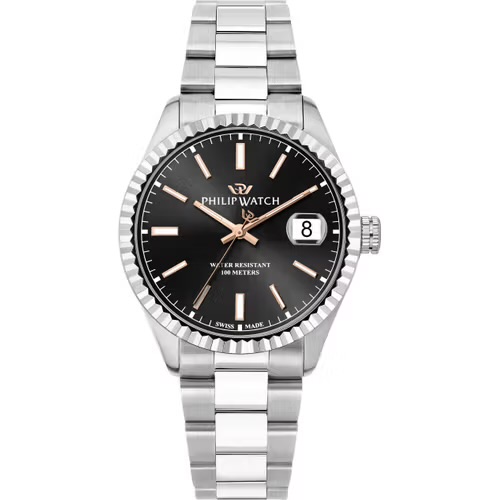 OROLOGIO PHILIP WATCH CARIBE URBAN – Genere : Uomo, Materiale e finitura cassa: Acciaio, Misura cassa: 39.00mm, Spessore cassa: 9.35mm, Finitura: Lucido, satinato, Colore cassa: Silver, Vetro: Vetro zaffiro, trattamento antiriflesso, Materiale cinturino: Acciaio, Colore cinturino: Silver, Chiusura: Fibbia diver c/pulsanti e blocco di sicurezza, Swiss made: Si, Water resistant: 10 atm, Garanzia: Ufficiale 2 anni Philip Watch, Confezione: Originale Philip Watch.Consegna entro 3gg. Spedizione gratuita