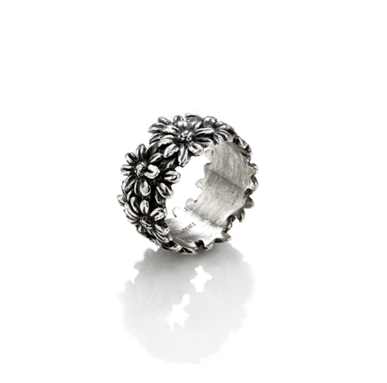 Anello in argento 925 modello fascia con margherite,misura disponibile n.14. Consegna entro 3gg.Spedizione gratuita.