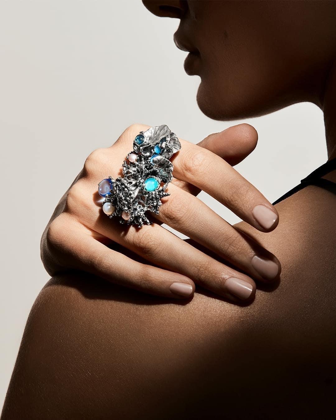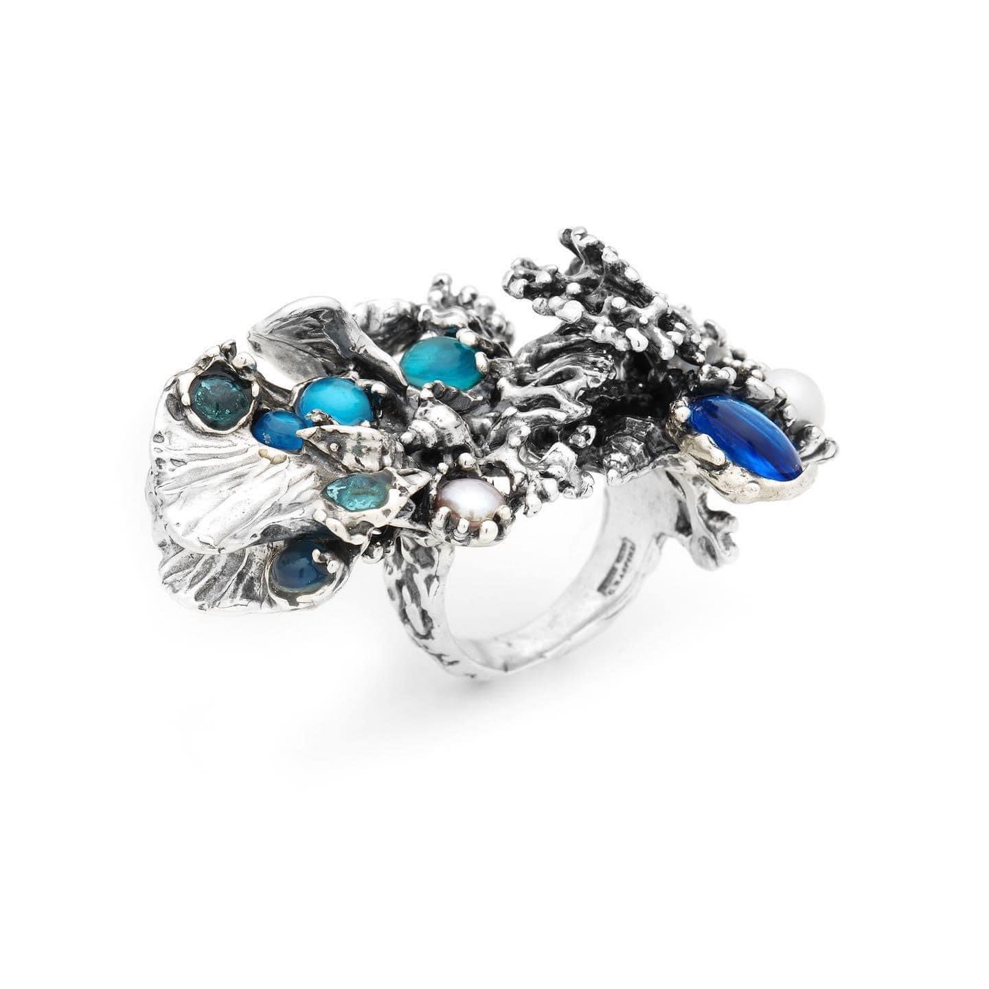 L’Anello Pacific Blue Reef regala una sinfonia di colori, legati alla profondità e lucentezza del mare. Tutte le creature magiche della barriera corallina in un anello elegante e contemporaneo.