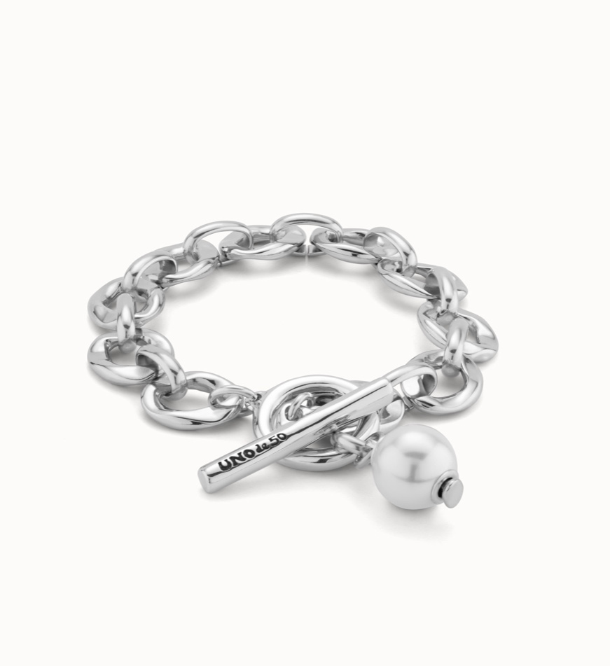 Bracciale a catena in metallo placcato argento con perla. Consegna entro 3gg lavorativi. Spedizione gratuita.