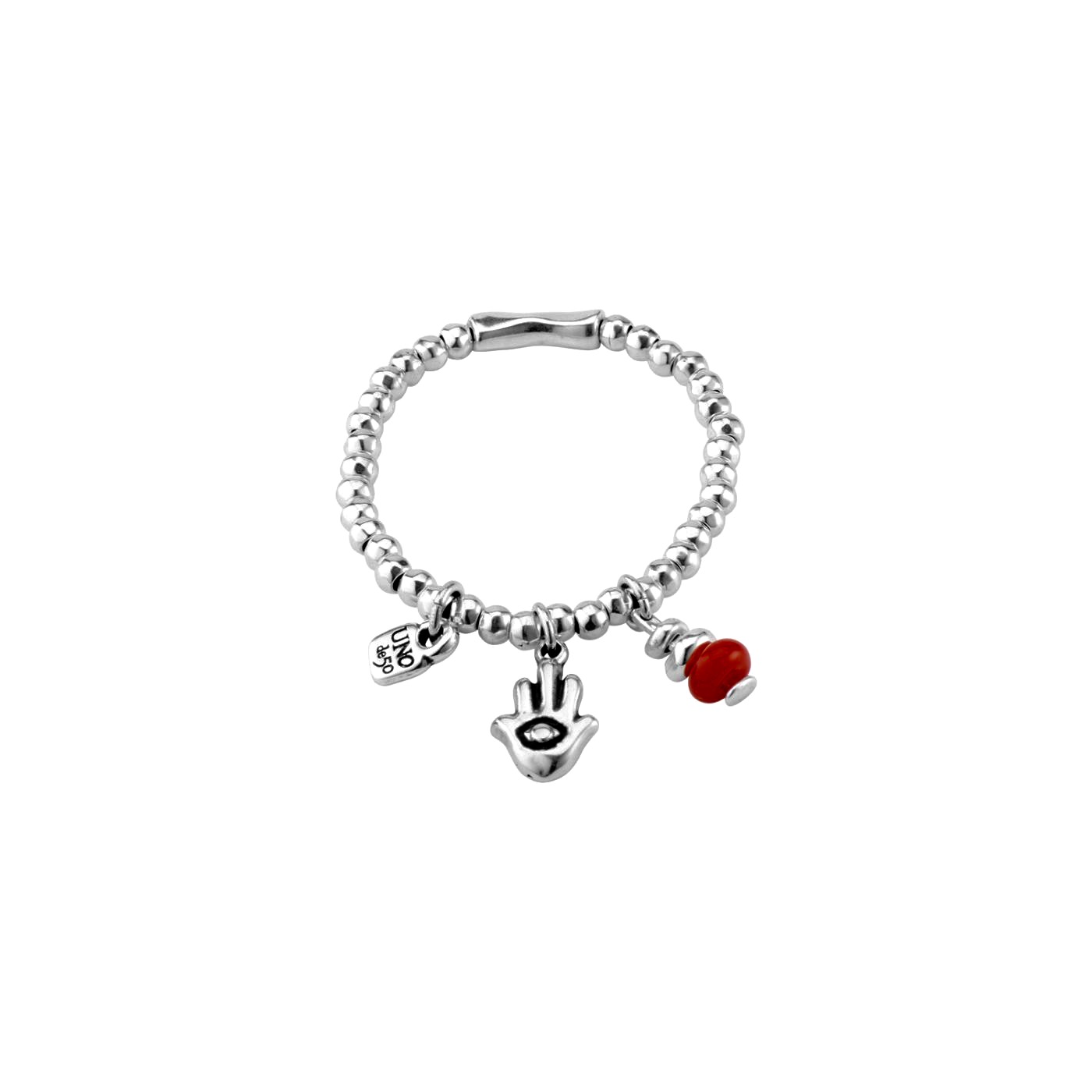 Bracciale talismano della linea Unode50,modello,elastico con pendenti,placcato in argento 15micron. Consegna entro 3gg.